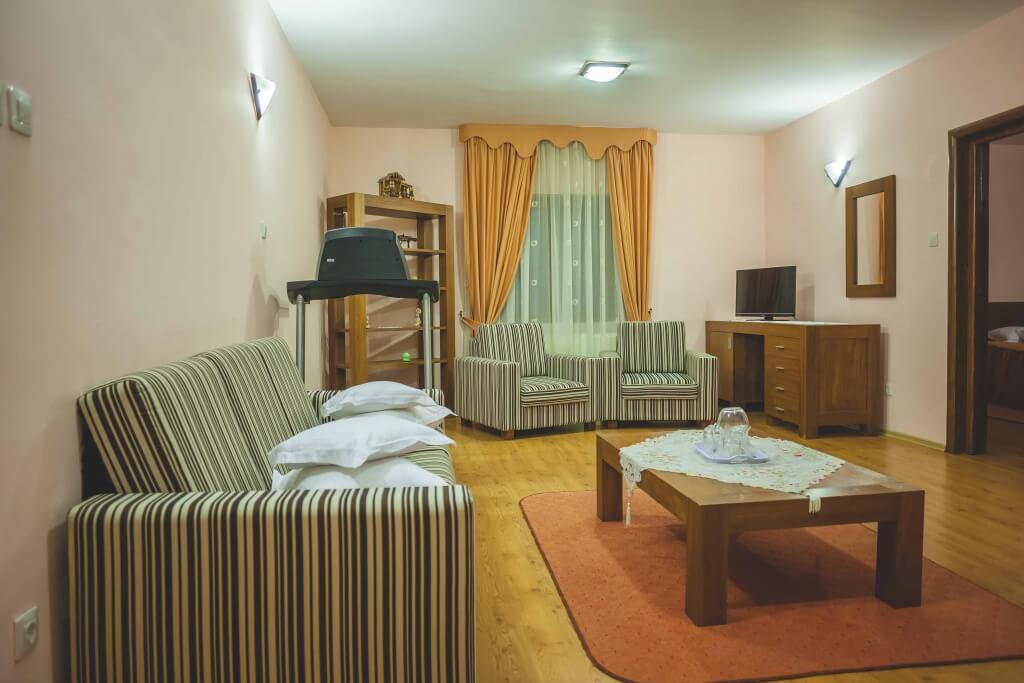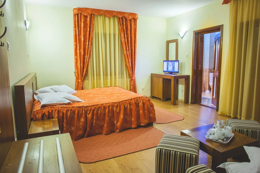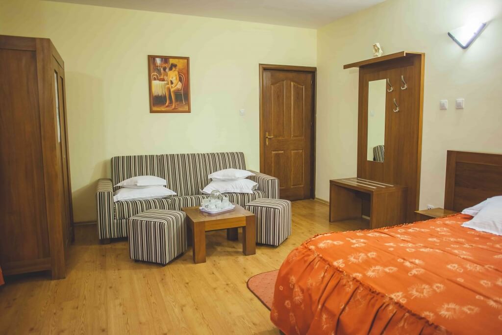 Pensiunea Edera vă oferă 24 locuri de cazare la standarde de 4 margarete. 5 camere duble, 2 apartamente, 1 twin, 1 camera tripla.
